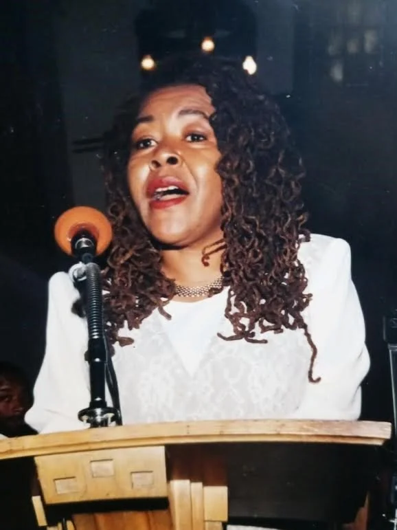 She was an artist and musician. She created the Board's logo. She organized and hosted regular Woodlawn art fairs ("Art In Action").