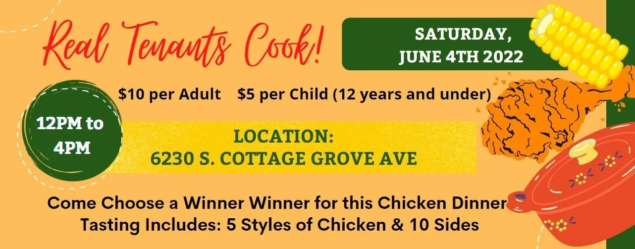 Come out and join STOP on June 4th from 12-4 pm to eat and the judge cook-off of our tenants’ associations! You’ll get to chose between five teams, each submitting chicken and two sides. It’s June’s first Saturday at The Jackson, 6230 S Cottage Grove. Hope to see you there!